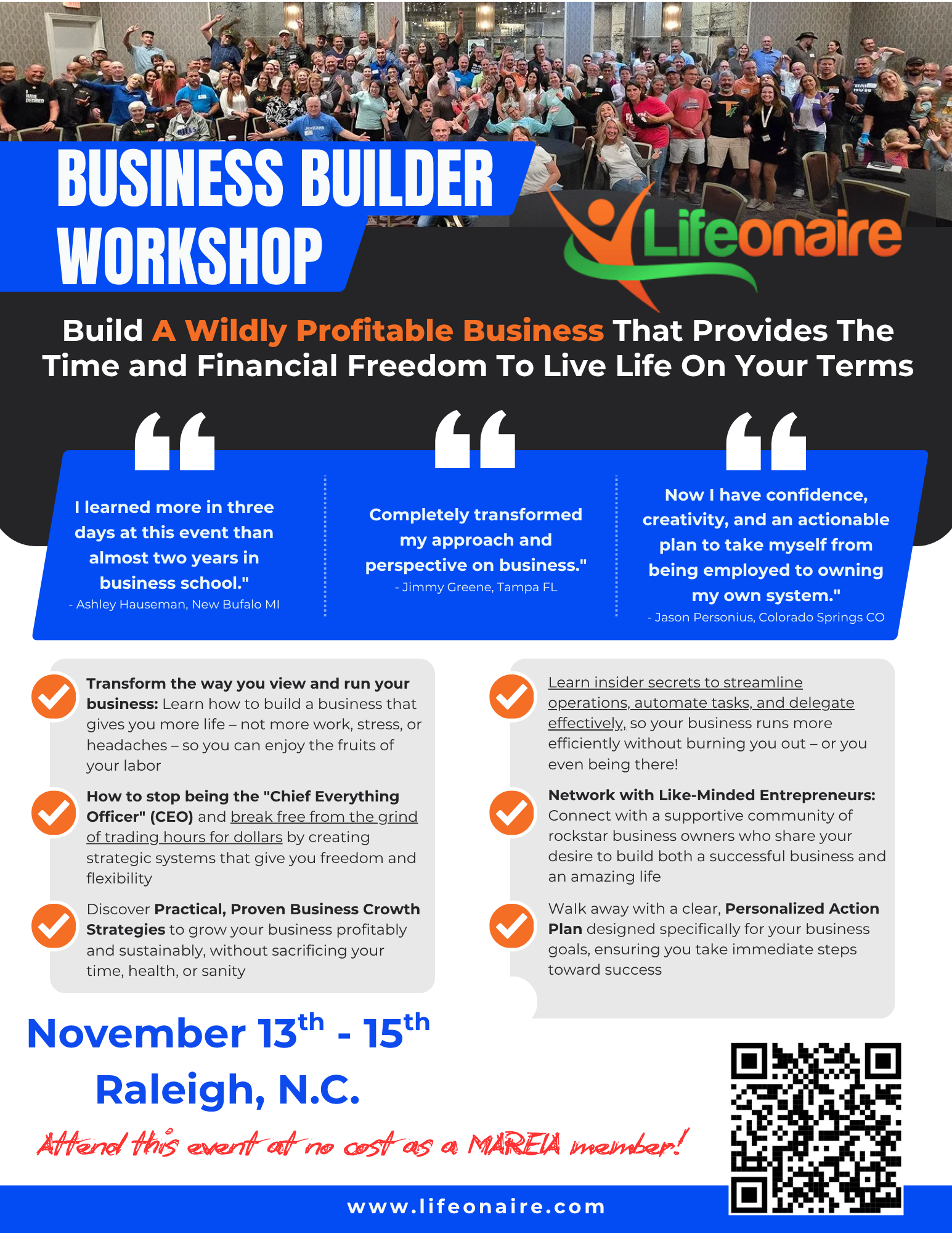 - The support and confidence that a group of like-minded, prosperity-focused can give you in starting or growing your real estate business
