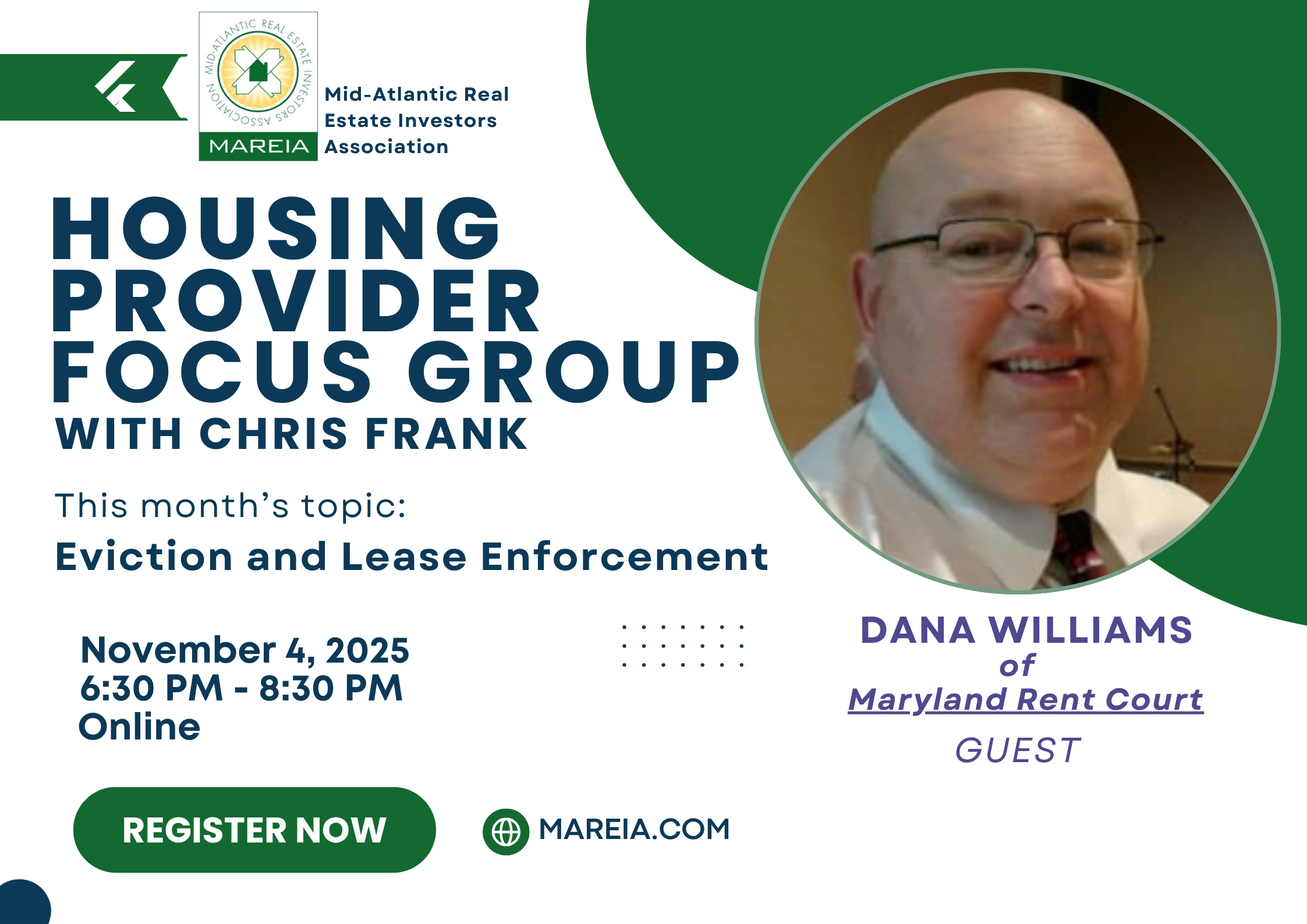 Mid-Atlantic Real Estate Investors Association is the Baltimore area's most exciting community of real estate investors, landlords, wholesalers, retailers, creative buyers, lease/option aficionados and more.